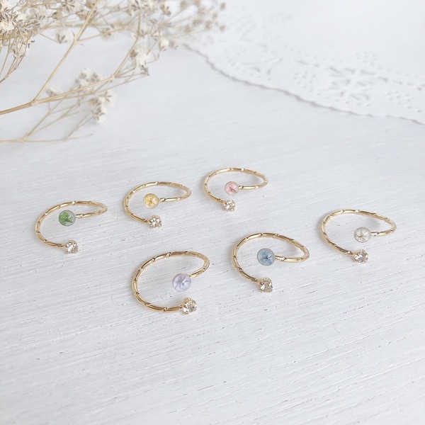 小さなお花入りリング/フリーサイズ/選べるカラー