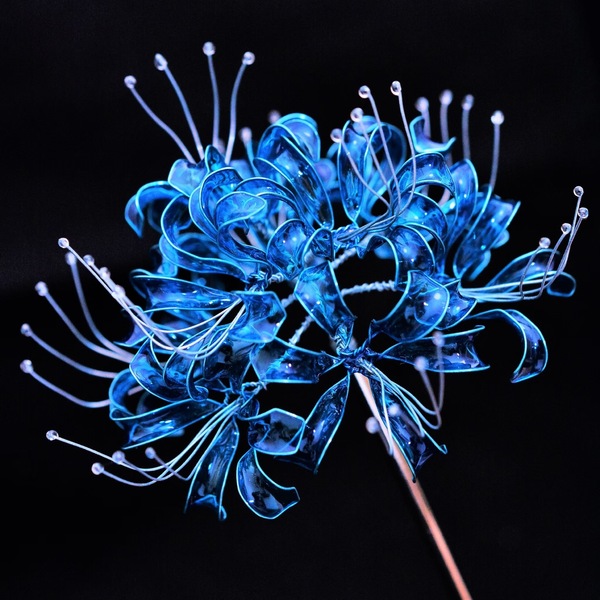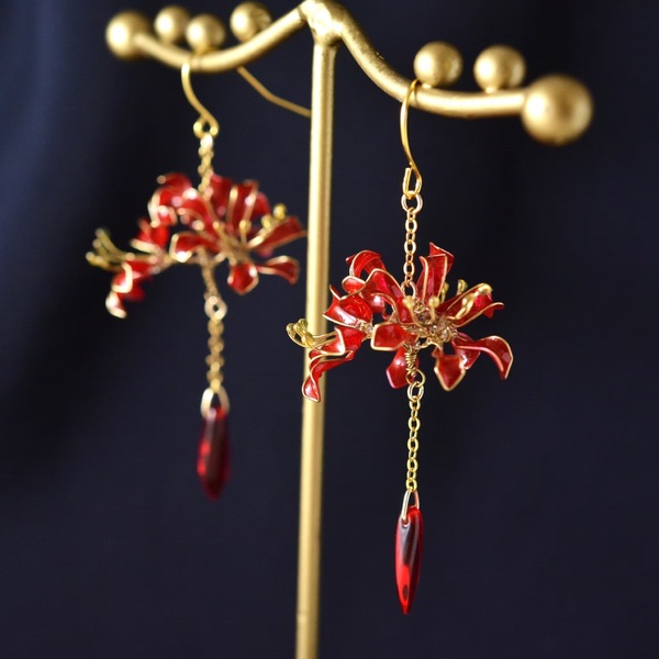 雫滴る彼岸花のピアス、イヤリング 蒼