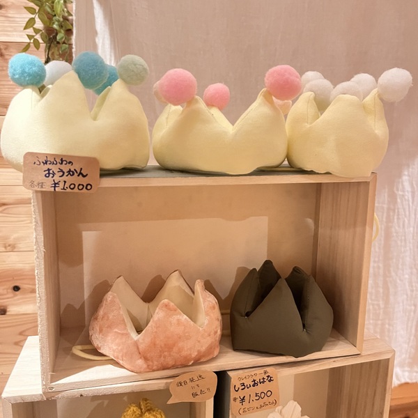 その他、大人向けのアクセサリー、メリーやクレイフラワー等のインテリア、スタイ、赤ちゃんやお子さまも遊べる手作りおもちゃ等…多数ご用意します。