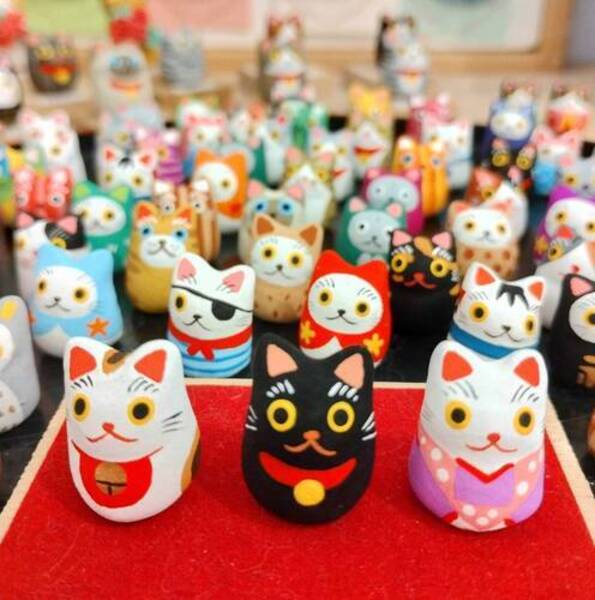 ネコもの雑貨・アクセサリー・猫人形・豆猫・石猫・ポストカード等、猫の他にトカゲや鳥をモチーフにした物もあります。
