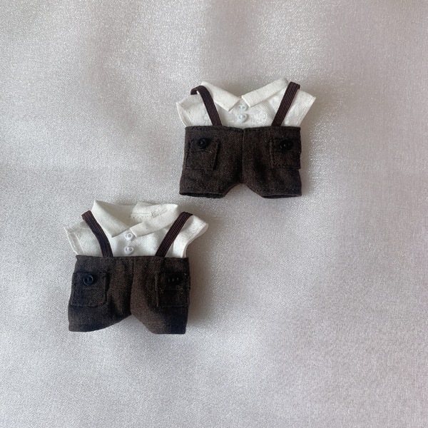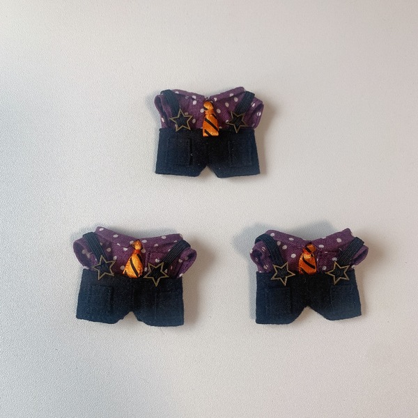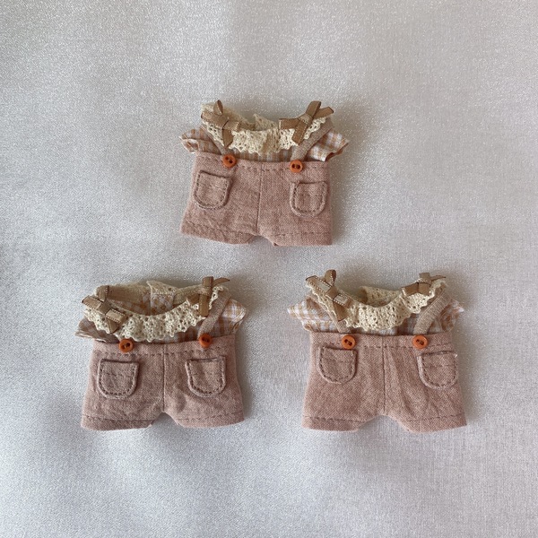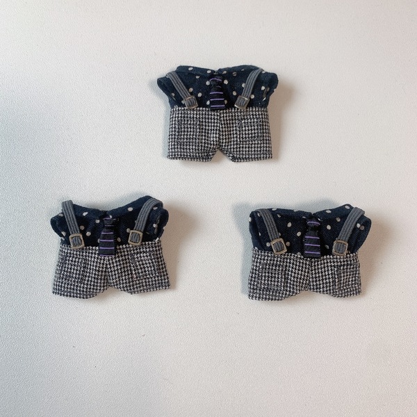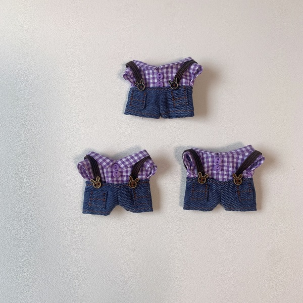 シャツとサロペットのセット ギンガム(紫)8㎝