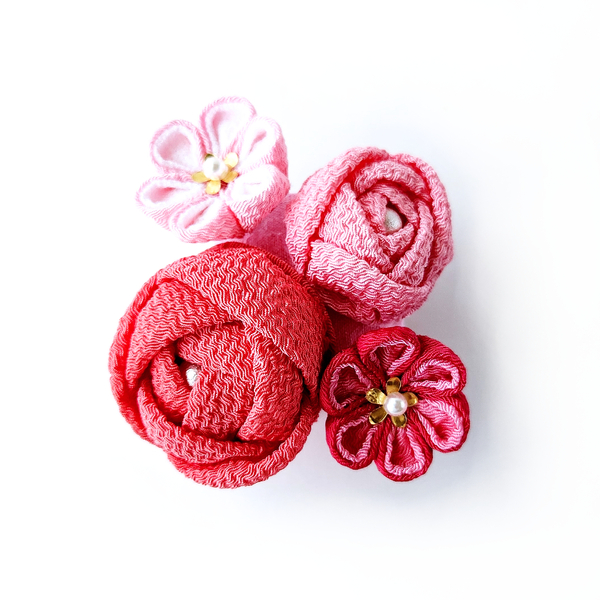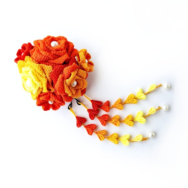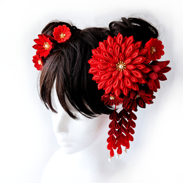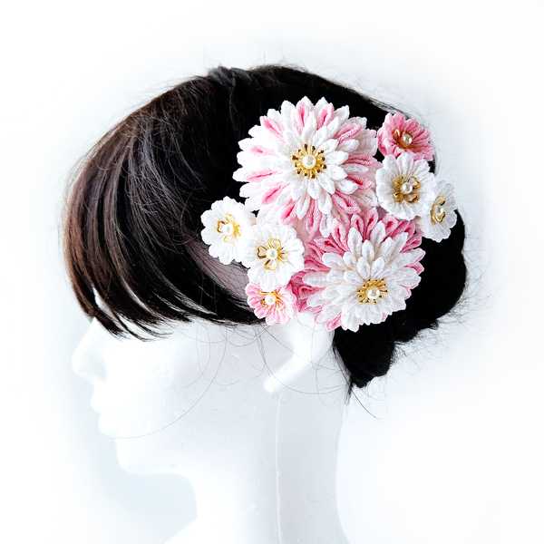 八重菊の髪飾りとUピンと下がり飾りのセット