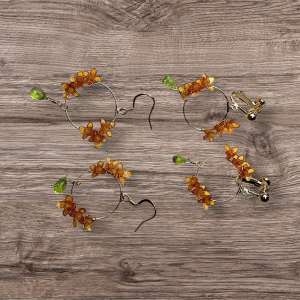 【オレンジアベンチュリン使用】金木犀のイヤリング/ピアス