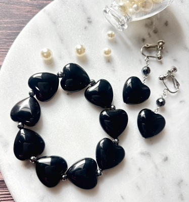 ハートのオニキスのブレスレット